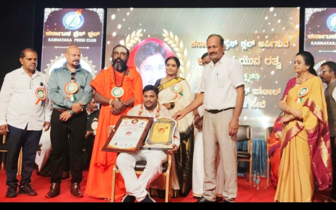 ಬೆಂಗಳೂರಿನ ಕನ್ನಡ ಭವನ ನಯನ ಸಭಾಂಗಣದಲ್ಲಿ ಕರ್ನಾಟಕ ಪ್ರೆಸ್ ಕ್ಲಬ್ ನ 2025ನೇ ವಾರ್ಷಿಕ ಪ್ರಶಸ್ತಿ ಸಮಾರಂಭದಲ್ಲಿ ಕಲಬುರ್ಗಿ ಜಿಲ್ಲೆಯ ಚಿಂಚೋಳಿ ತಾಲೂಕಿನ ವೀರಶೈವ ಲಿಂಗಾಯತ ಸಮಾಜದ ತಾಲೂಕ ಅಧ್ಯಕ್ಷರು ಮತ್ತು ಪತ್ರಕರ್ತರಾದ ಸಂಜೀವಕುಮಾರ್ ಪಾಟೀಲ್ ಅವರಿಗೆ ಕರ್ನಾಟಕ ರಾಜ್ಯ ಯುವ ರತ್ನ ಪ್ರಶಸ್ತಿಯನ್ನು ಕನ್ನಡ ಚಲನಚಿತ್ರದ ಹಿರಿಯ ನಟಿರಾದ ಶೃತಿ ಅವರು ಪ್ರಶಸ್ತಿ ನೀಡಿ ಸನ್ಮಾನಿಸಿದರು ಕಾರ್ಯಕ್ರಮದಲ್ಲಿ ಡಾ. ಶ್ರೀ ಸಿದ್ದರಾಜು ಸ್ವಾಮೀಜಿಗಳು ಪಾಲನಹಳ್ಳಿ ಮಠ, ಕರ್ನಾಟಕ ಸರ್ಕಾರದ ದೇವರಾಜ್ ಅರಸು ನಿಗಮದ ಅಧ್ಯಕ್ಷರಾದ ಕೀರ್ತಿ ಗಣೇಶ, ಬೆಂಗಳೂರಿನ ಸಮಾಜ ಸೇವಕರದ ಮಹೇಂದ್ರ ಮುನ್ನೋಟ್, ರವಿ ಮಾಹಾದೇವ್, ಕರ್ನಾಟಕ ಪ್ರೆಸ್ ಕ್ಲಬ್ ನ ರಾಜ್ಯಾಧ್ಯಕ್ಷರಾದ ದಯಾನಂದ ಎಂ, ಹಾಗೂ ಕರ್ನಾಟಕ ಪ್ರೆಸ್ ಕ್ಲಬ್ ನ ಪ್ರಧಾನ ಕಾರ್ಯದರ್ಶಿಗಳಾದ ರಮೇಶ ಎಸ್. ಜಿ, ಕರ್ನಾಟಕ ಪ್ರೆಸ್ ಕ್ಲಬ್ ಮುಖ್ಯಸ್ಥರದ ಗಂಗಾಧರ, ಮತ್ತು ಅನೇಕ ಗಣ್ಯರು ಕಾರ್ಯಕ್ರಮದಲ್ಲಿ ಭಾಗವಹಿಸಿದ್ದರು.